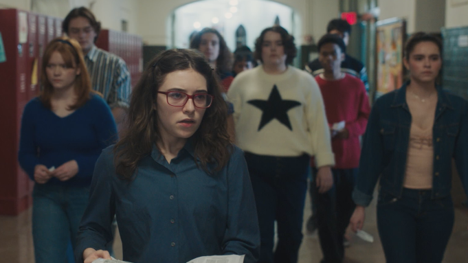 The film stars Alyssa Marvin as Meg, a geeky and, frankly, quite annoying teenage girl from a small American town whose mum, along with three pupils from her school, was shot and killed ten years ago. With a commemoration approaching, Meg decides to put on a performance that begins as a solo musical number before quickly turning into a scene-by-scene reenactment of the shooting itself. Her classmates, who initially react with discomfort and confusion, somehow flip almost immediately into being desperate to take part, volunteering to play the victims with barely any pushback.